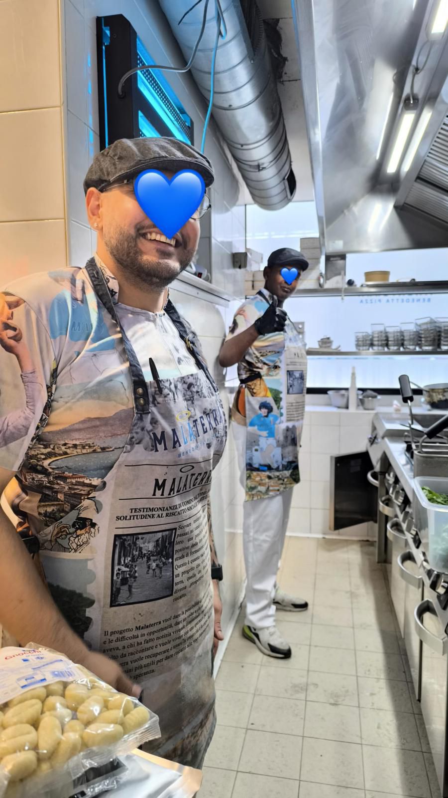Primo giorno di lavoro per S. di Torbellamonaca, scarcerato il mese scorso e accolto nella cucina di Malaterra dal sorriso del collega M.