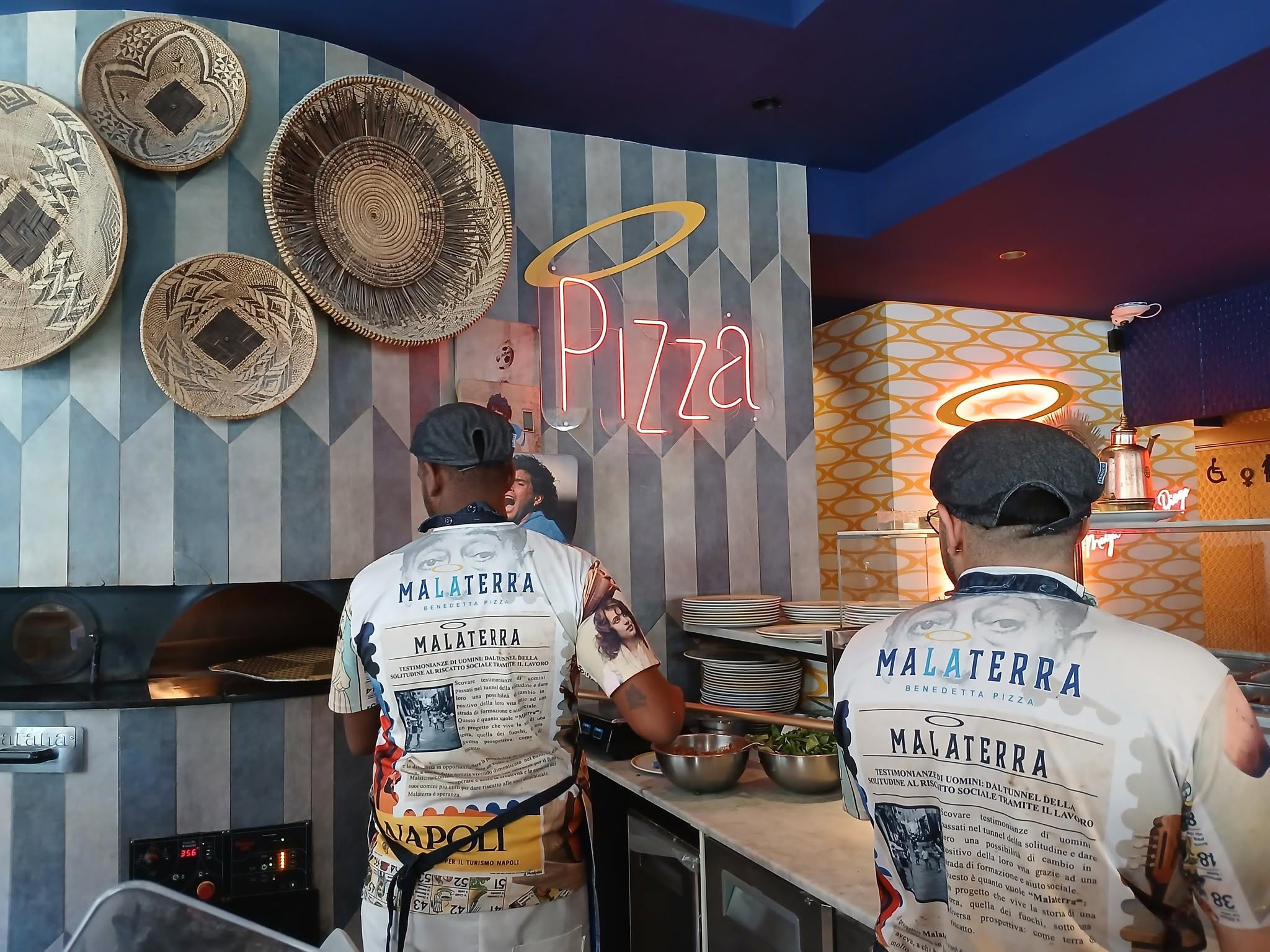 Anche M. proviene da Rebibbia Nuovo Complesso ed è considerato bravissimo sotto ogni profilo. È qui da un bel po’. Ivan Righi, titolare di questa ottima pizzeria napoletana a piazza Cavour, e Paolo Mancini che gestisce il personale, i dipendenti se li coccolano, se li allevano, se li formano in un ambiente familiare e sereno. In caso di necessità offrono anche alloggio.