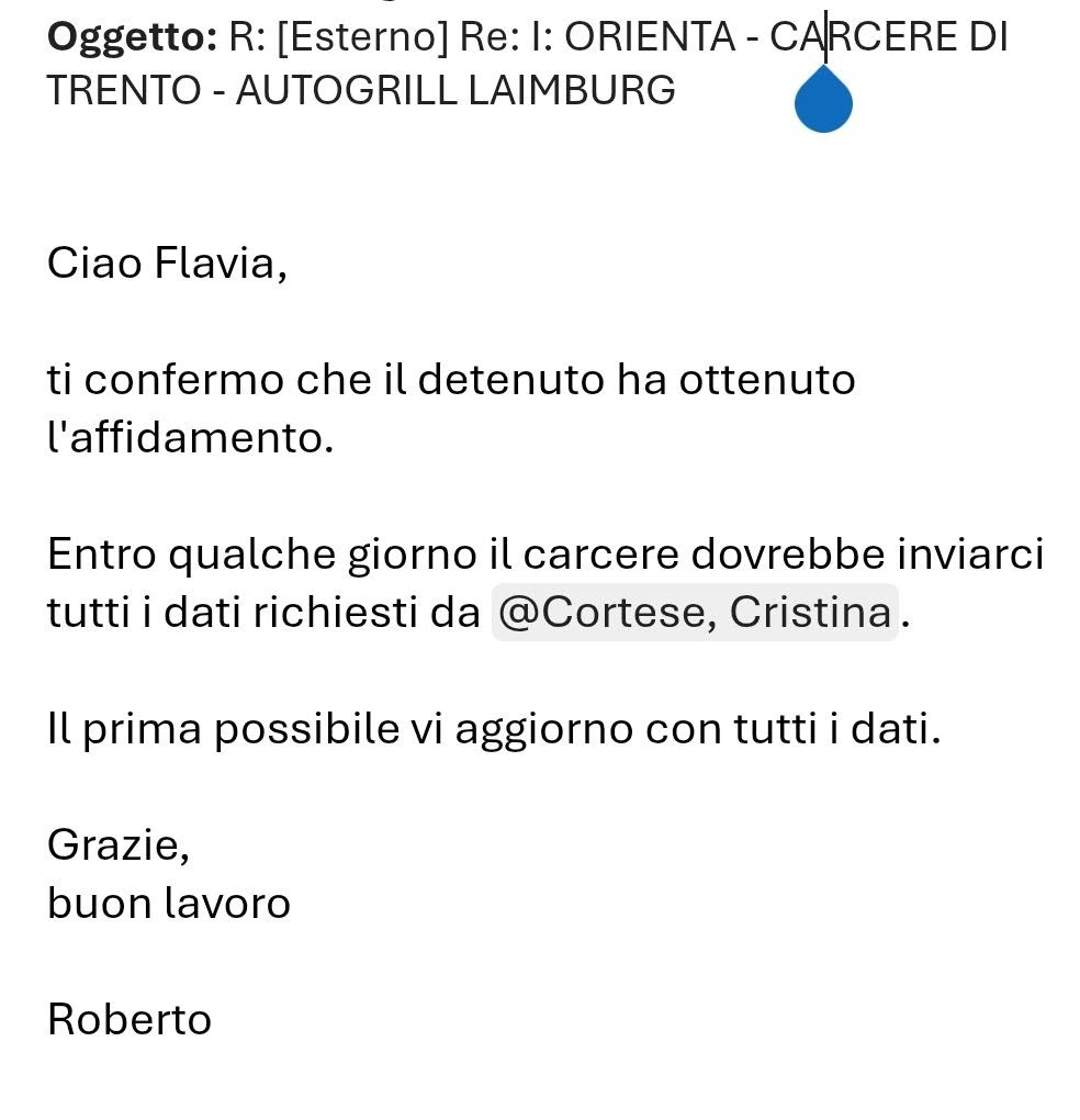 La notizia appena giunta dall’Alto Adige (evviva l’efficientissimo Roberto Pedrini di Orienta Agenzia per il lavoro) illumina di colpo la cella di F. Dopo il colloquio di maggio e dopo l’udienza di martedì F. sperava tanto in questa opportunità di Autogrill.