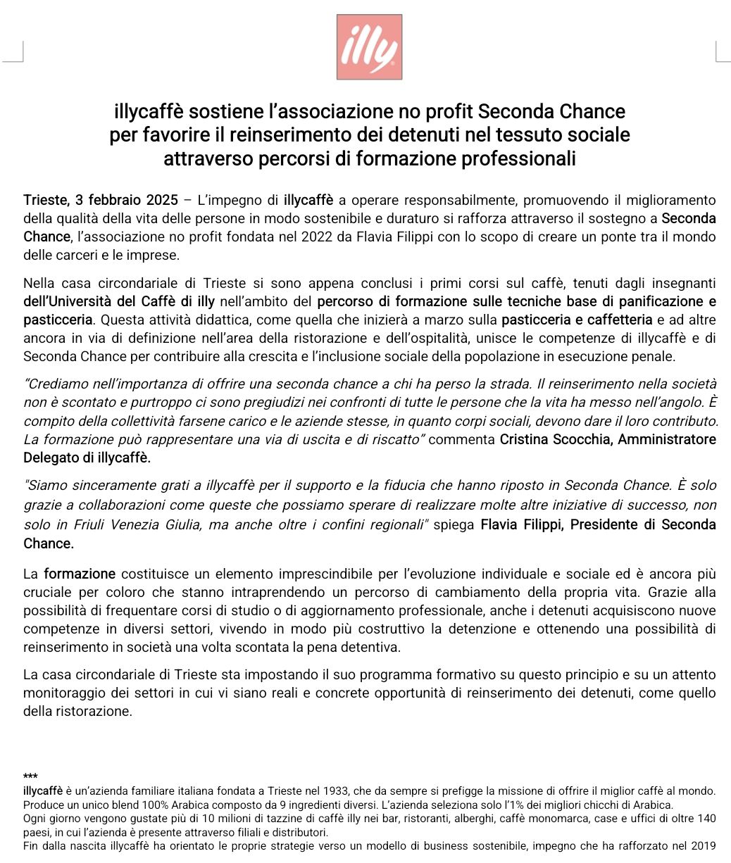 Con illycaffè nel carcere di Trieste. Grazie ai vertici e allo staff di illy, a Raffaella Cavallo e a Barbara Autuori di Seconda Chance Friuli-Venezia Giulia.